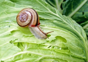 カタツムリ ミスジマイマイ キャベツを食べる 神奈川県 藤沢市