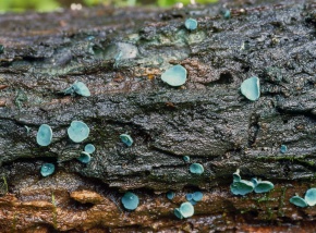 ロクショウグサレキン Chlorociboria aeruginosa