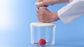 空気を膨張させる実験 気体の性質 断熱膨張 大気の圧力 01.簡易真空容器に風船を入れ,中の空気を抜く(途中から1分49秒を16秒に短縮)→02.真空容器のアップ(1分21秒を15秒に短縮)→03.中の空気を元に戻す(途中から25秒を11秒に短縮)04.真空容器のアップ(32秒を11秒に短縮)動画