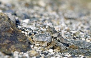 カワラバッタ 河原の石に隠れる 隠蔽的擬態 保護色 山梨県 10月