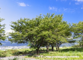 サクラの四季 夏 ソメイヨシノ Prunus X yedoensis cv.Yedonensis バラ科 夏の青葉が茂る 山梨県 南巨摩郡富士川町 8月