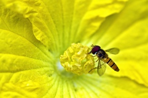 ホソヒラタアブ ヘチマ訪花