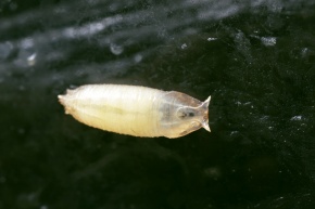 チョウバエ類(ホシチョウバエ)幼虫 昆虫類双翅目 川の水質の指標生物 たいへんきたない水の指標 倍率5 7月 神奈川県 茅ヶ崎市