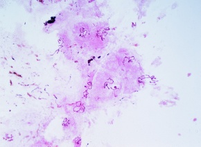 アカムシユスリカ 唾液腺染色体 ピロニン・メチルグリ-ン染色 顕微鏡倍率320