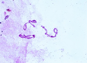 だ液腺染色体の観察 アカムシのだ液腺染色体 酢酸オルセイン染色 倍率400