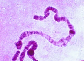 セスジユスリカ 唾液腺染色体とパフ 酢酸オルセイン染色 顕微鏡倍率500