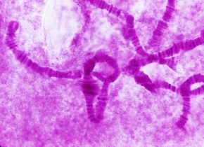 だ液腺染色体の観察 アカムシのだ液腺染色体 酢酸オルセイン染色 倍率600