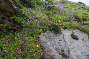 プリムナ・プリムリナ 他 Primula primulina 中心のお花畑 サクラソウ科 ブータンラバタマ下C3付近 b 2000年7月19日
