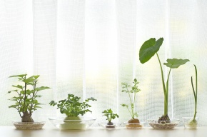 水栽培 左から サツマイモ ダイコン ラディッシュ ニンジン サトイモ タマネギ 神奈川県 藤沢市 7月9日