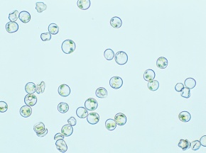 ゼニゴケ 胞子の発芽 原糸体 Marchantia polymorpha ゼニゴケ科 顕微鏡倍率20*1.25*PE2 画像の長辺0.70mm 神奈川県茅ヶ崎市 10月