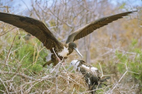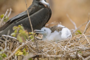 グンカンドリの親子 ヘノベサ島 ガラパゴス諸島 99.9
