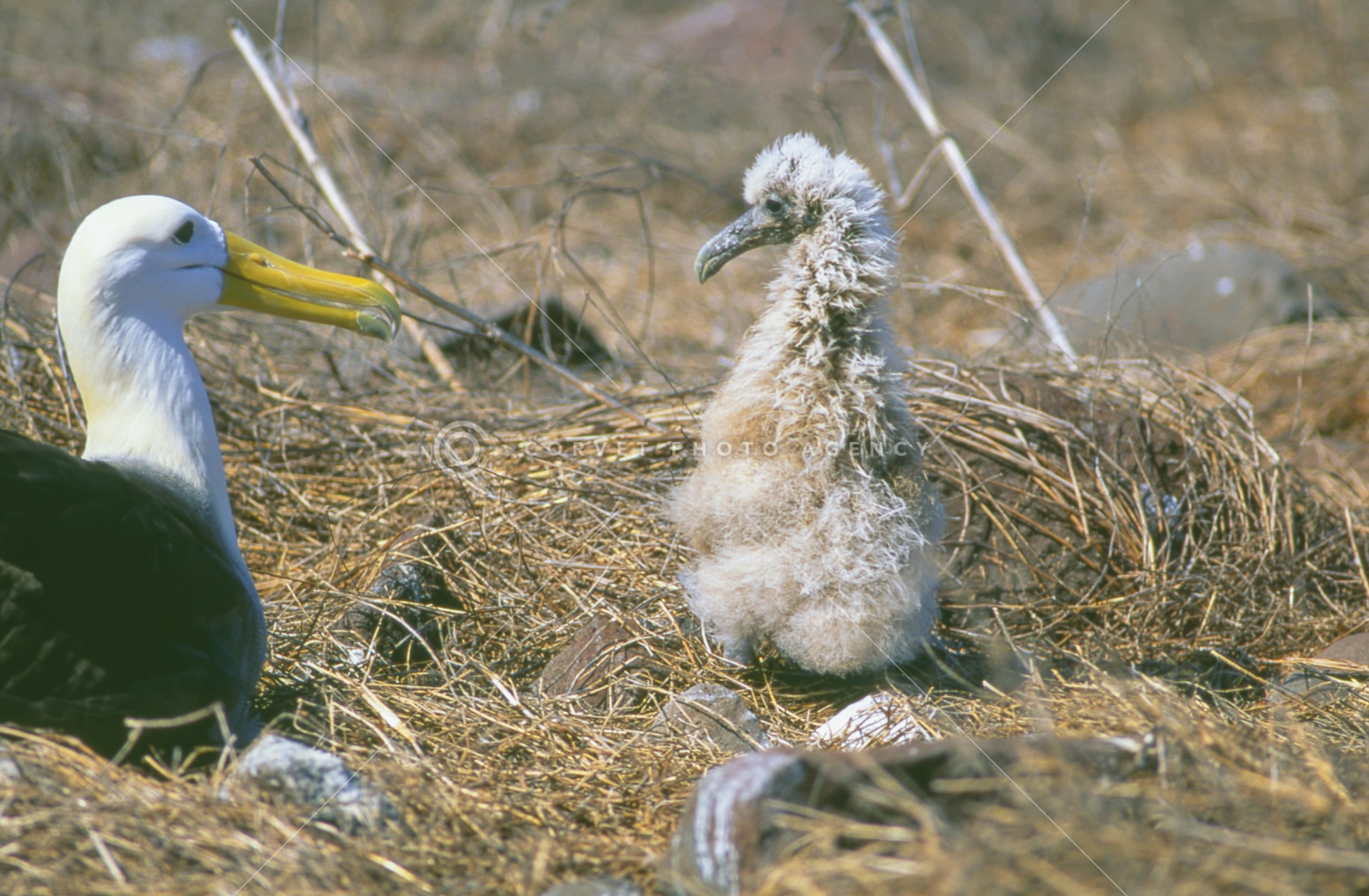 ガラパゴスアホウドリ エスパニョ~ラ島だけで繁殖するガラパゴスアホウドリ。翼を広げると2m50cmにもなる。雛はまだ産毛で親の美しさの片鱗もない。 エクアドル ガラパゴス諸島 8月
