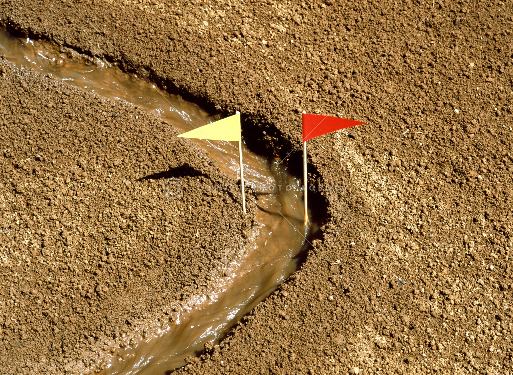 土山流水実験 水を流しはじめた時 流れの外側と内側に旗をたてる A-1/2