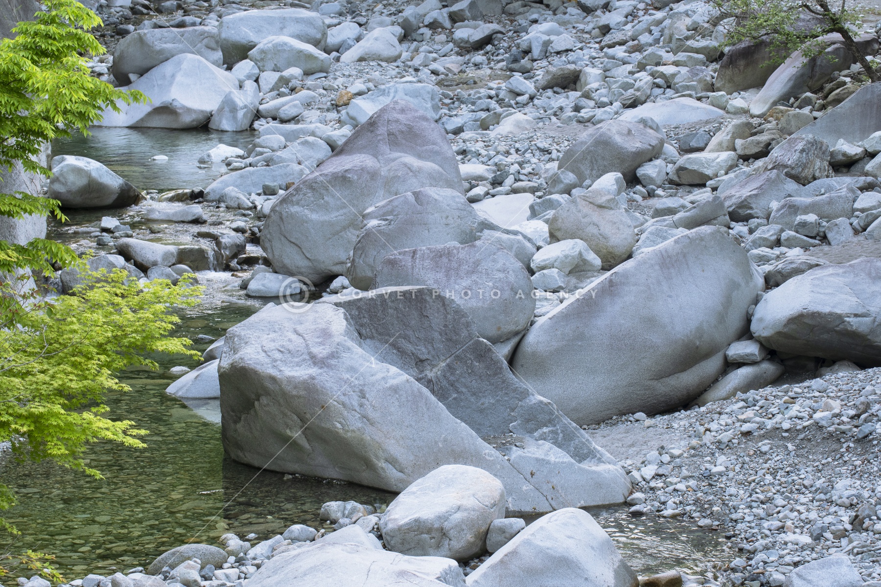 閃緑岩 石英閃緑岩類の巨礫 酒匂川支流 河内川 神奈川県 足柄上郡 山北町 5月