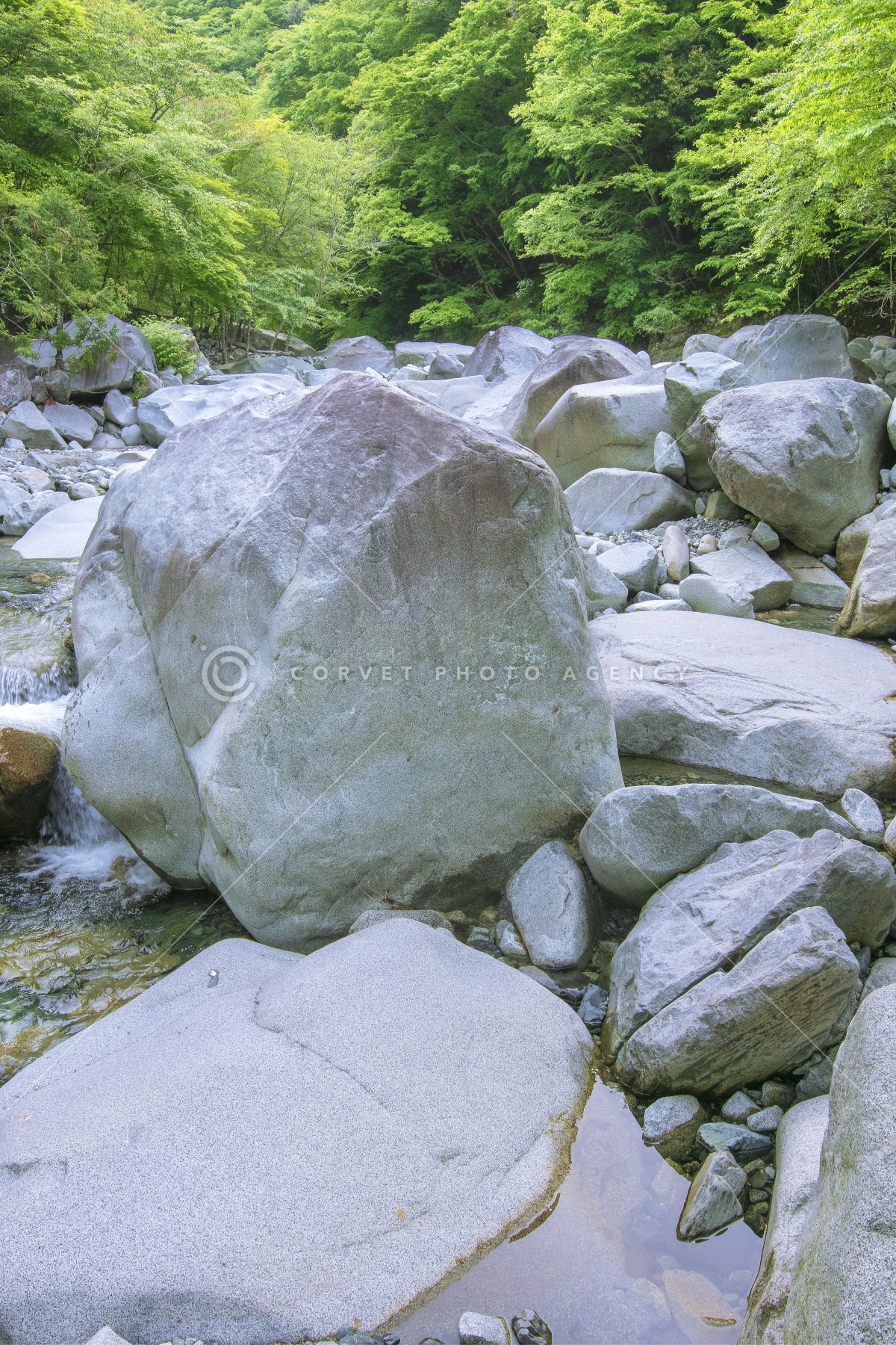 閃緑岩 石英閃緑岩類の巨礫 酒匂川支流 河内川 神奈川県 足柄上郡 山北町 5月