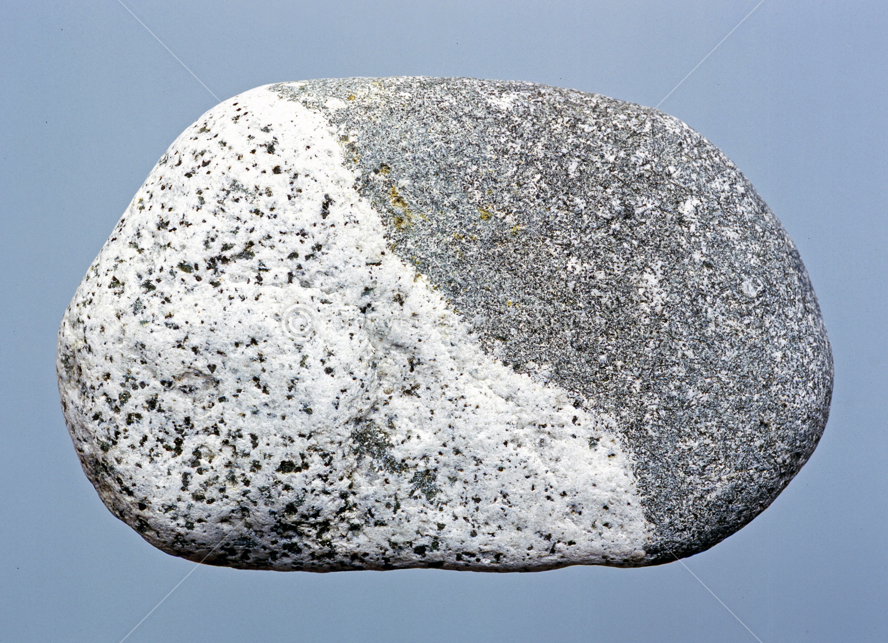 花崗岩(白色の部分)閃緑岩(灰色の部分)閃緑岩は花崗岩に捕獲されたゼノリス 長野県北安曇郡小谷村姫川
