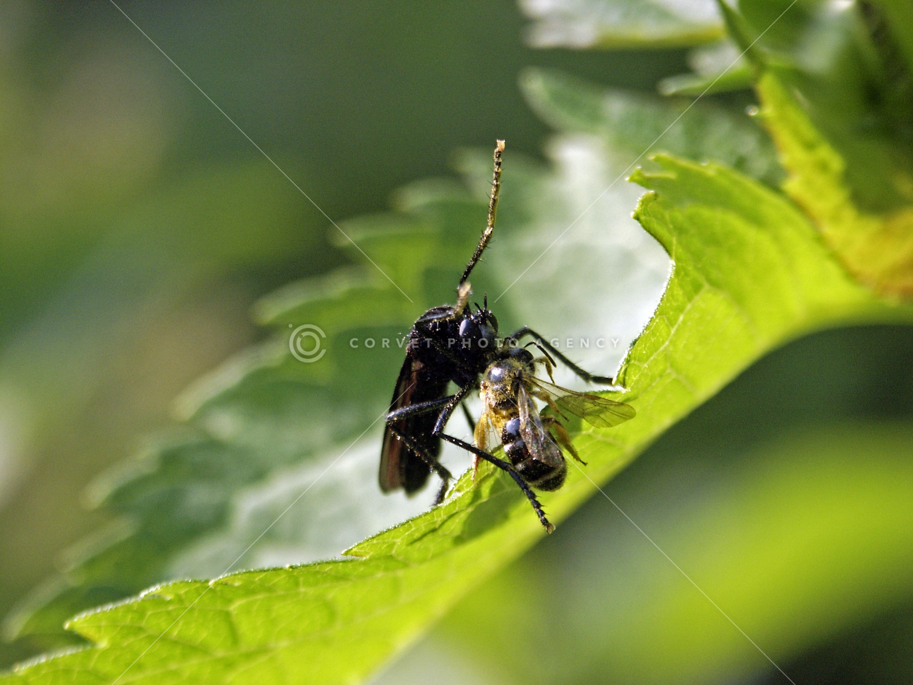 メスアカケバエ♂ コハナバチ捕食 6月 山梨県
