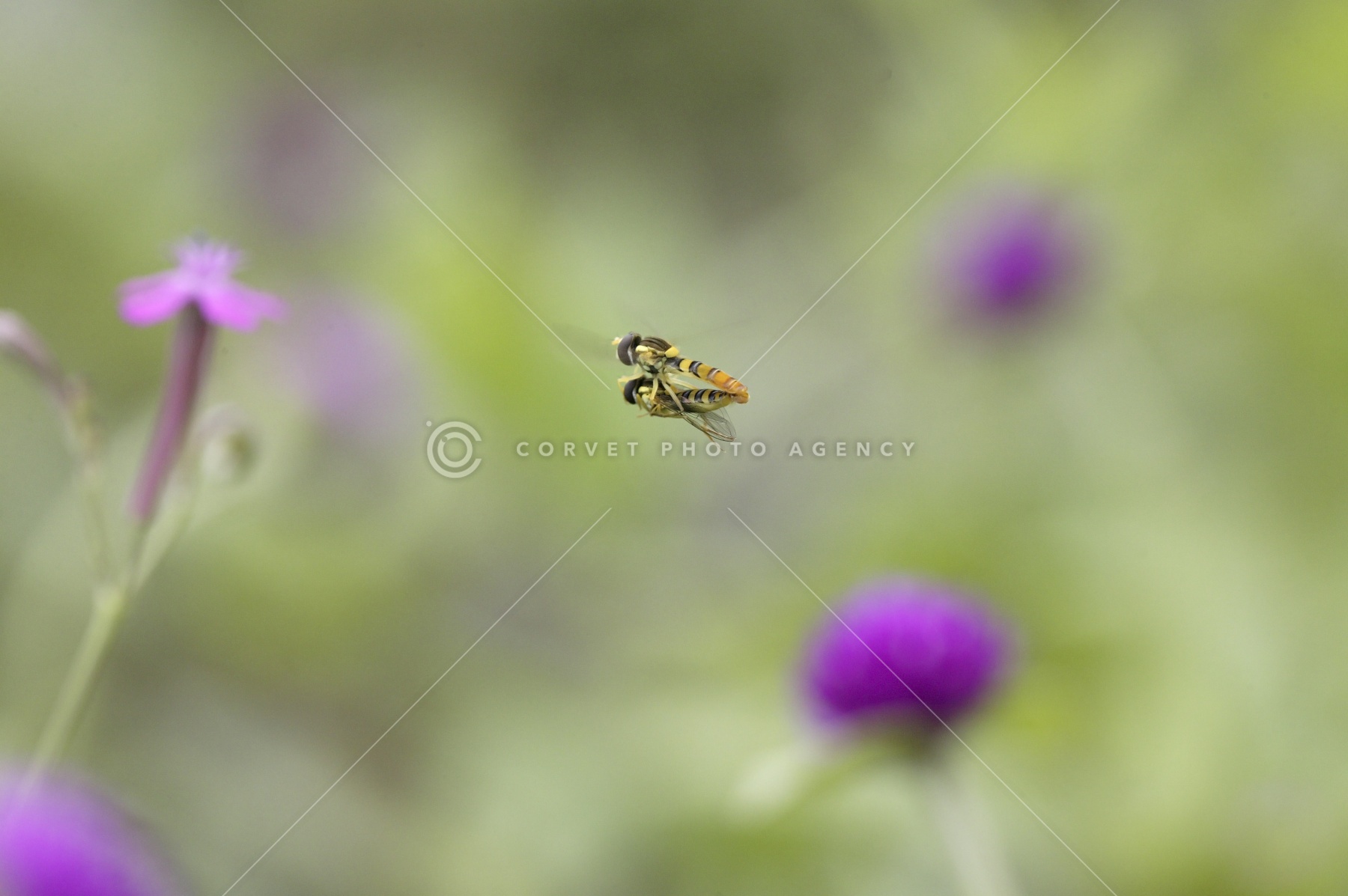 ヒラタアブの一種 交尾 ホバリング 8月 山梨県