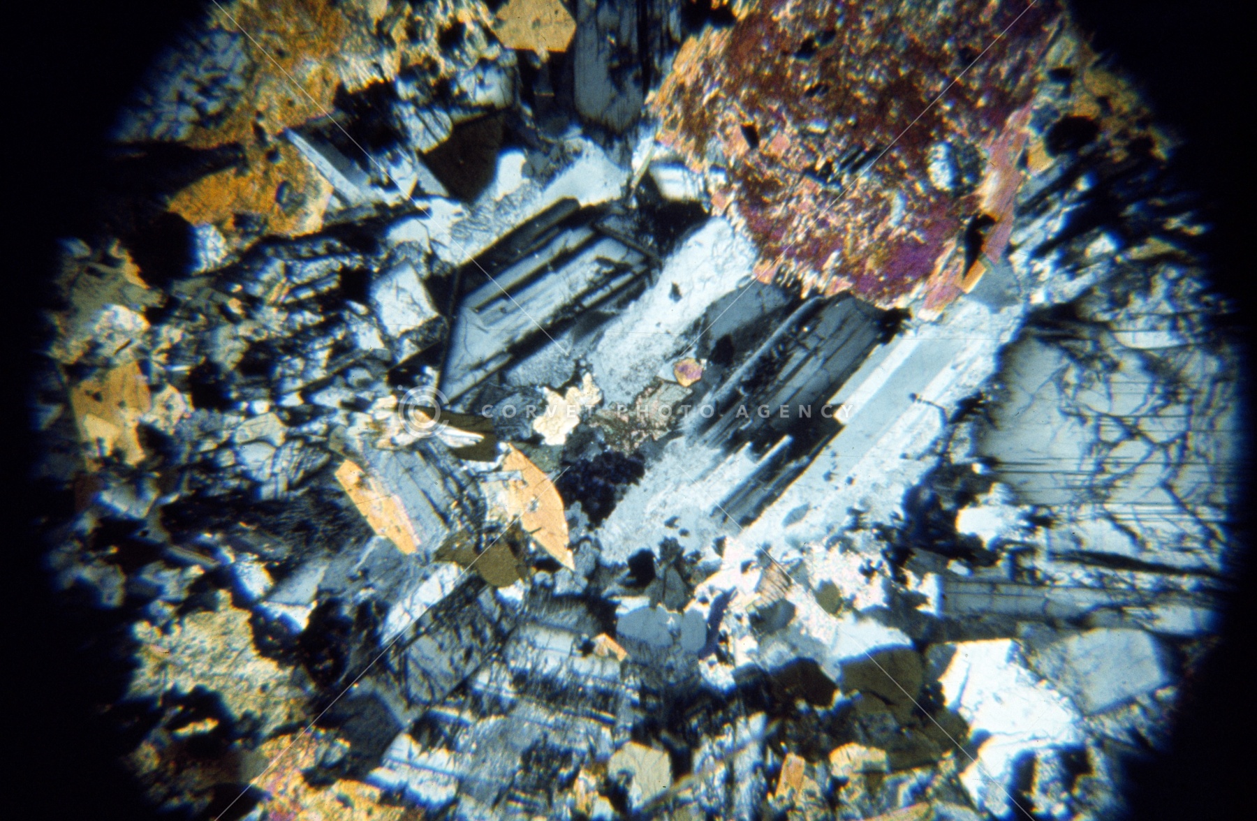 閃緑岩 クロスニコル 顕微鏡写真
