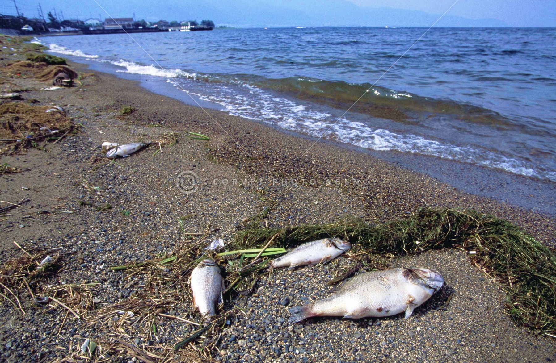 水質汚染  琵琶湖の水質汚染の影響で死んだ魚  滋賀県 琵琶湖