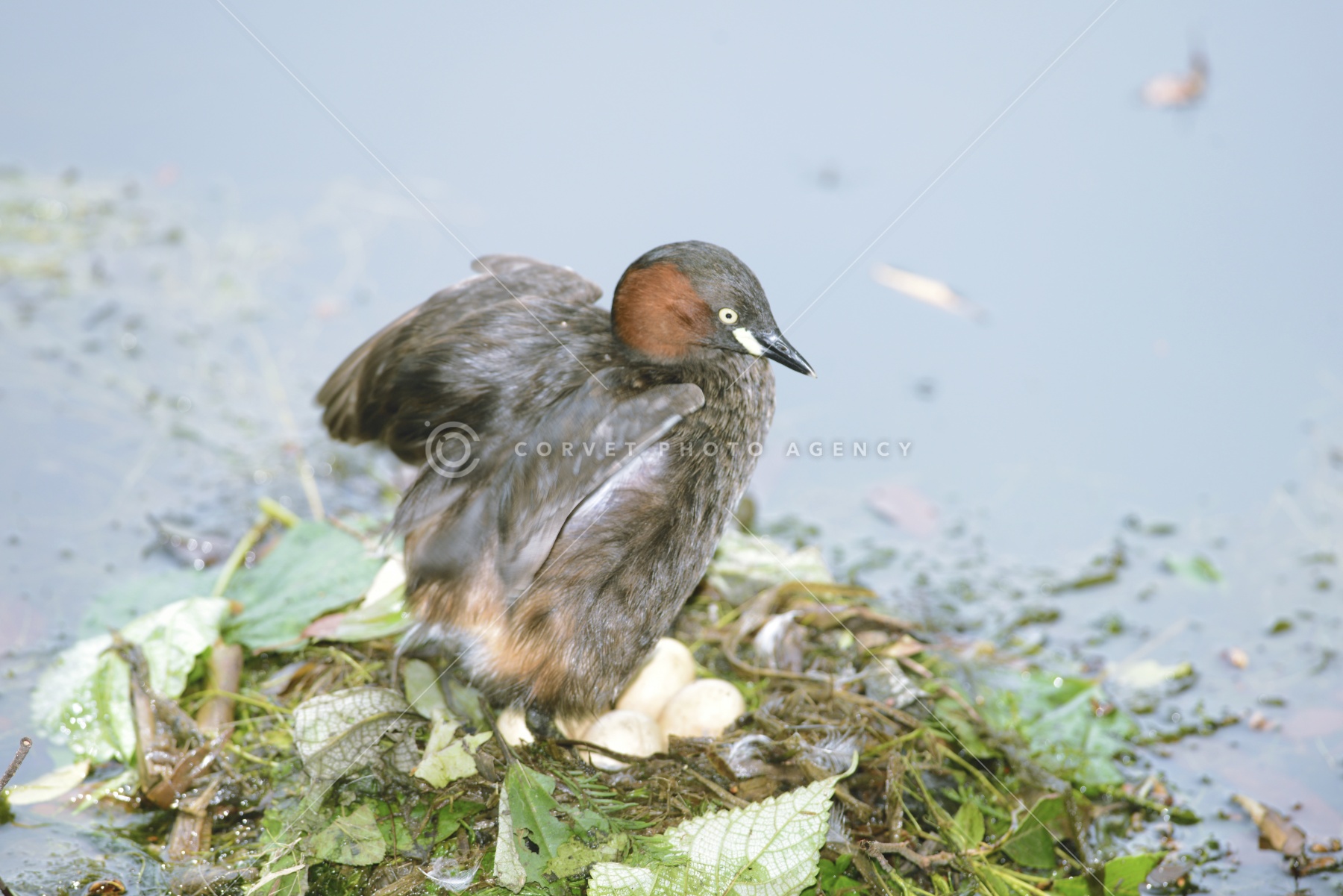 カイツブリ 抱卵 羽ばたいて卵を冷やす 東京都 武蔵野市 井の頭公園 6月