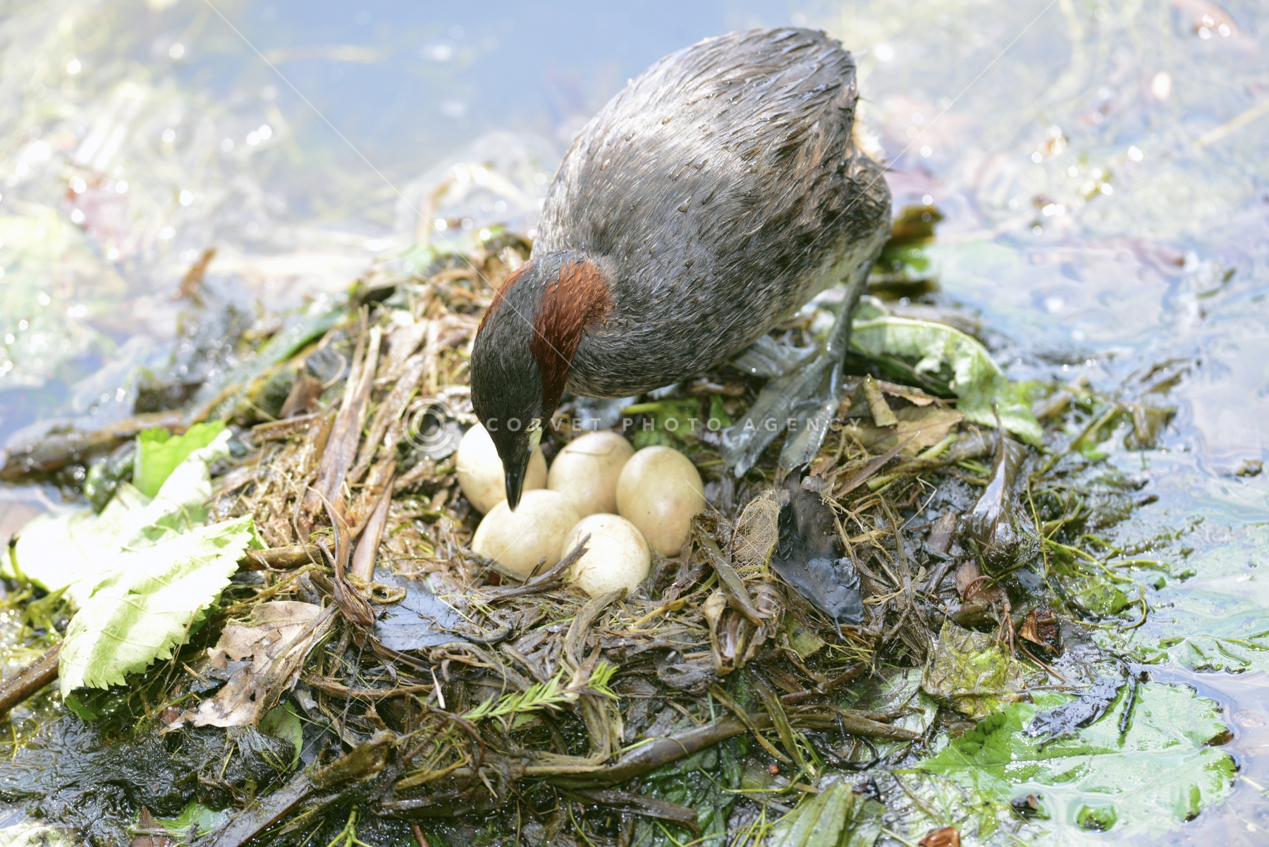 カイツブリ 抱卵 均一に温められるよう卵を移動させる 東京都 武蔵野市 井の頭公園 6月