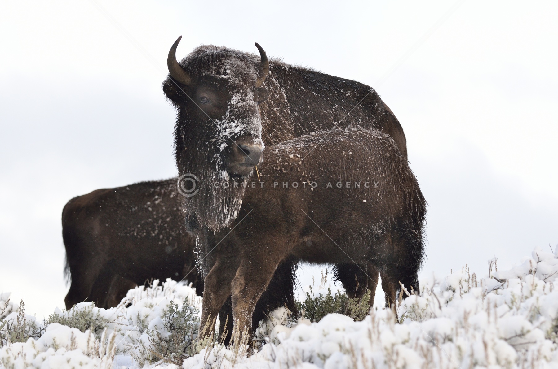 アメリカバイソン 授乳 Bison bison ウシ科 American bison イエローストーン国立公園 アメリカ 9月 世界自然遺産
