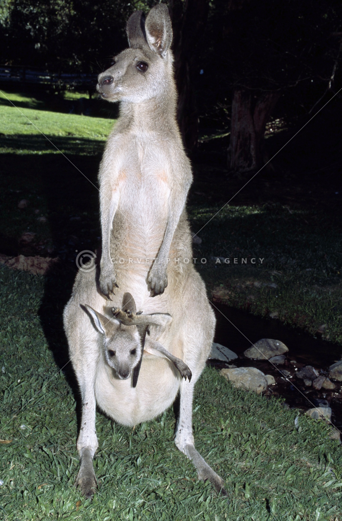 オオカンガルー親子 お腹の袋から顔を出す オーストラリア 01.4.17