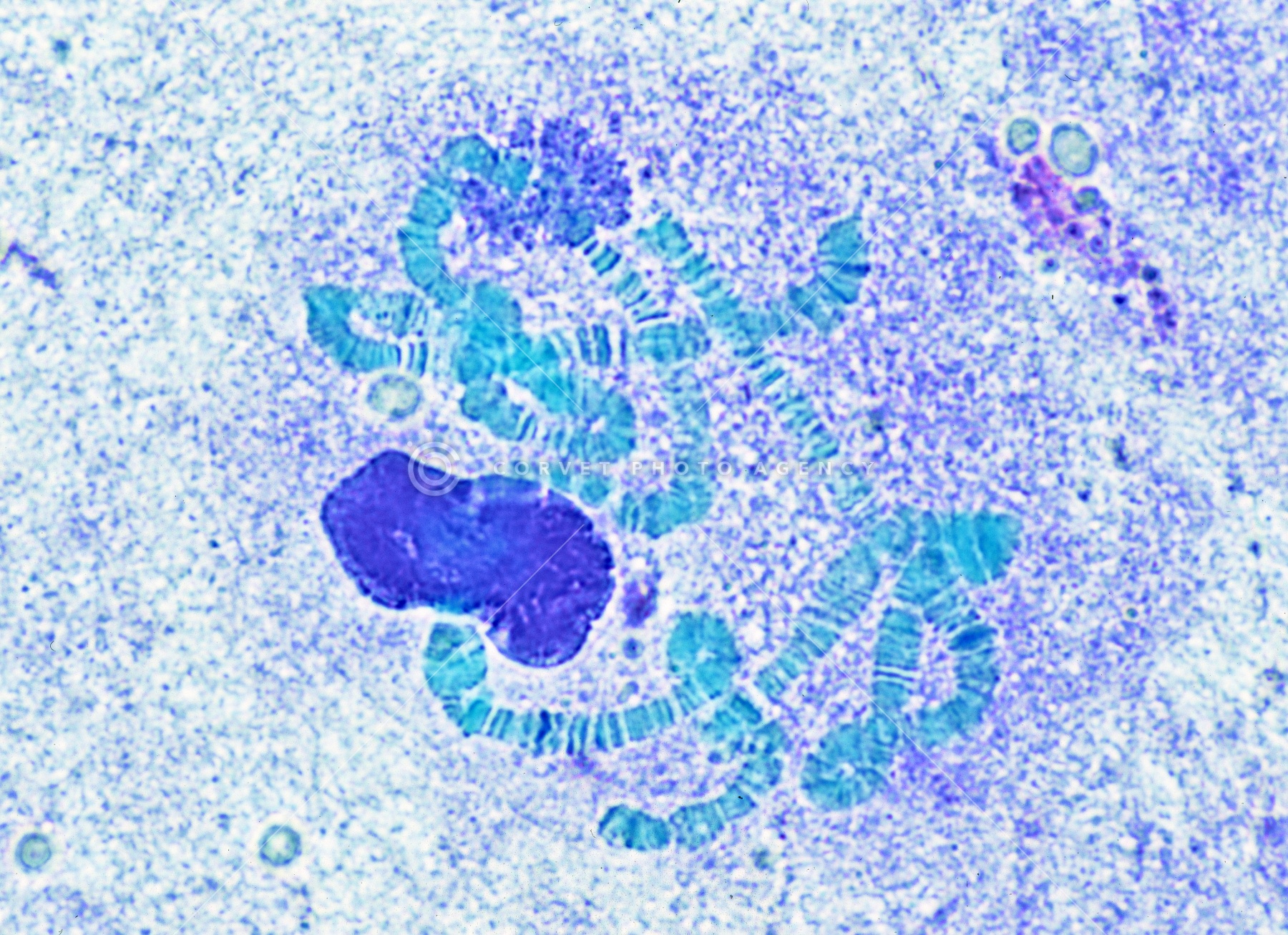 アカムシユスリカ 唾液腺染色体 ピロニン・メチルグリ-ン染色 顕微鏡倍率320