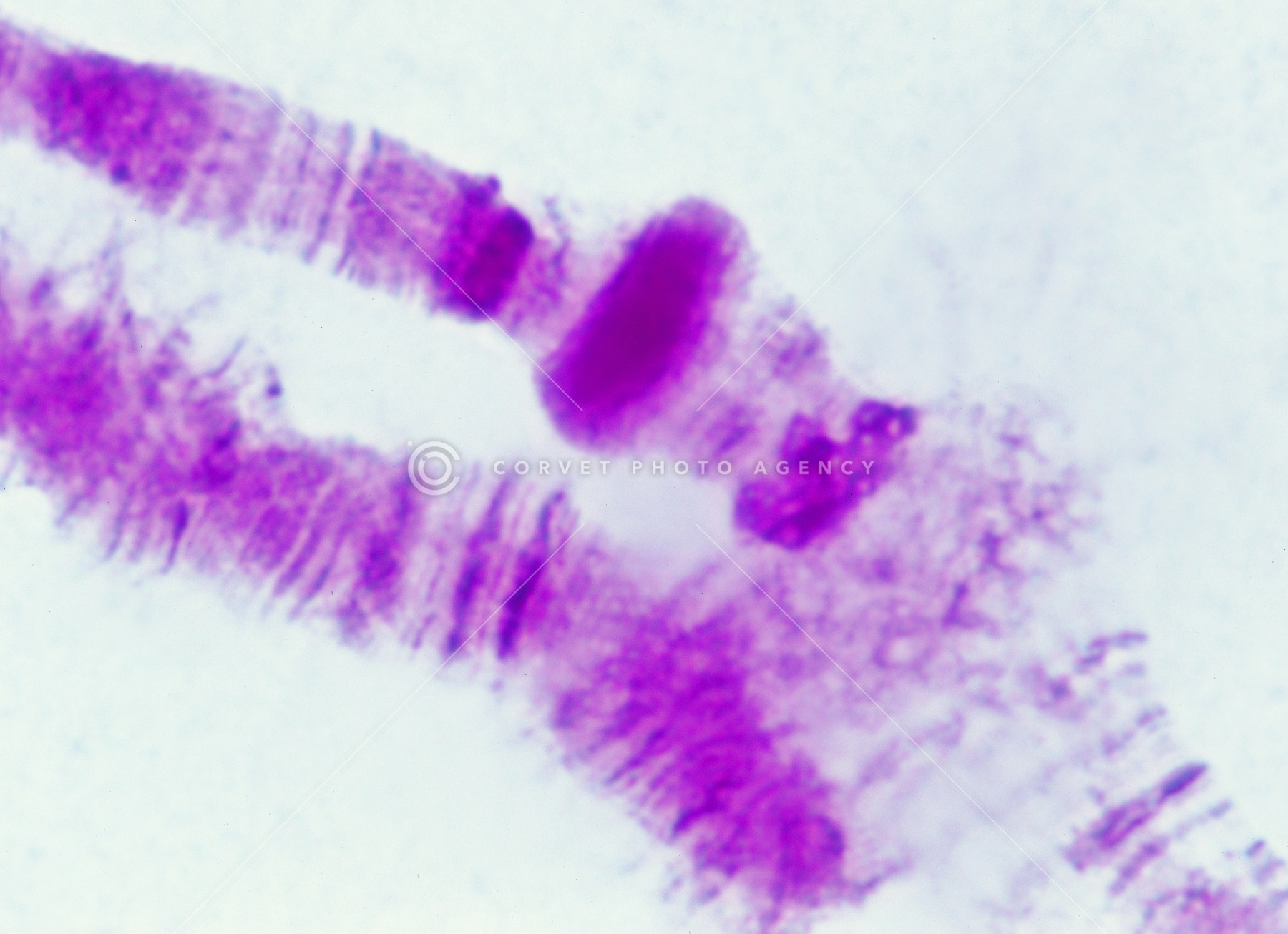 アカムシユスリカ 唾液腺染色体 パフ 酢酸オルセイン染色 顕微鏡倍率1000