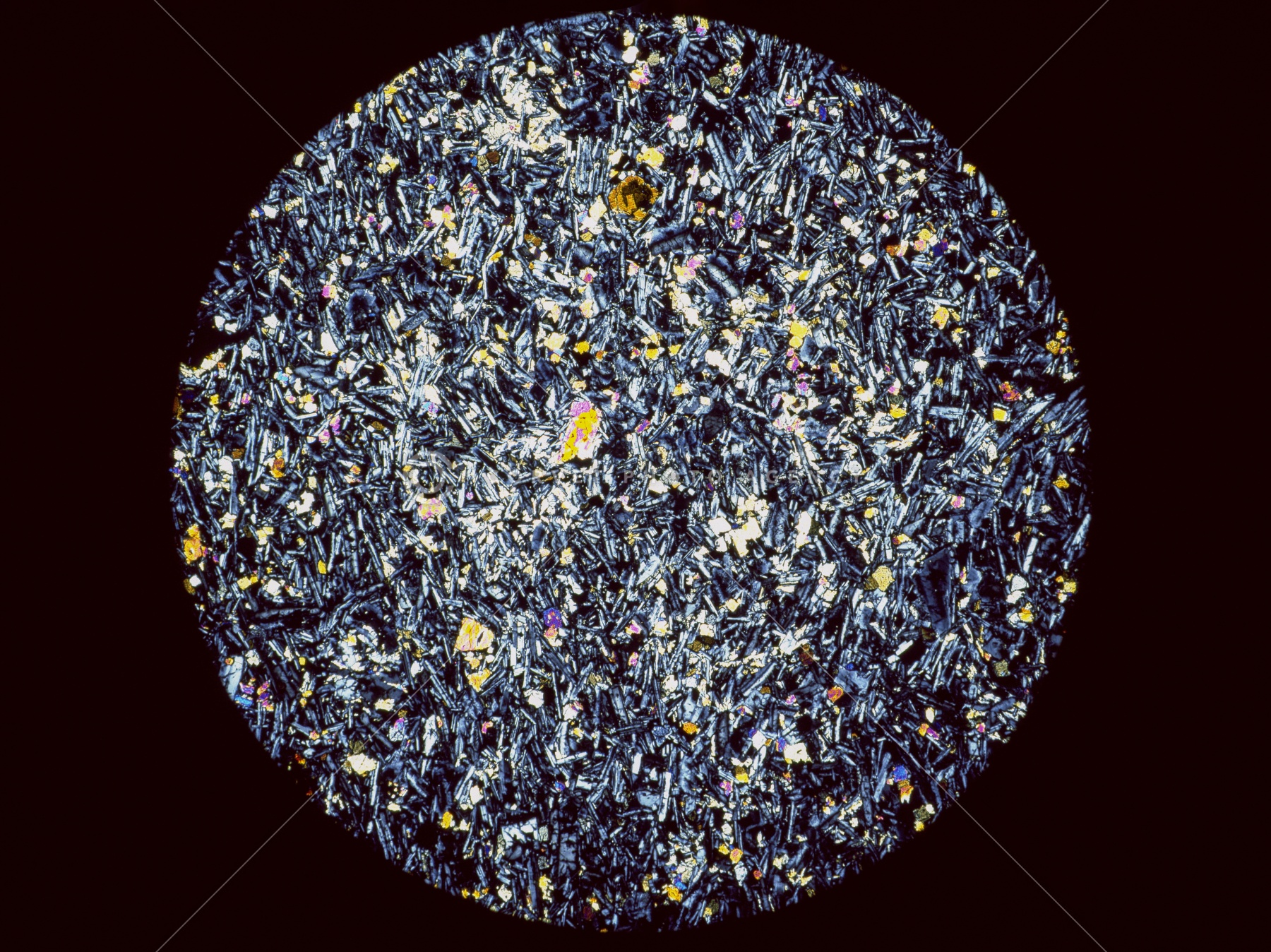 玄武岩 偏光顕微鏡 倍率15 直交ニコル (かんらん玄武岩)兵庫県 豊岡市 玄武洞