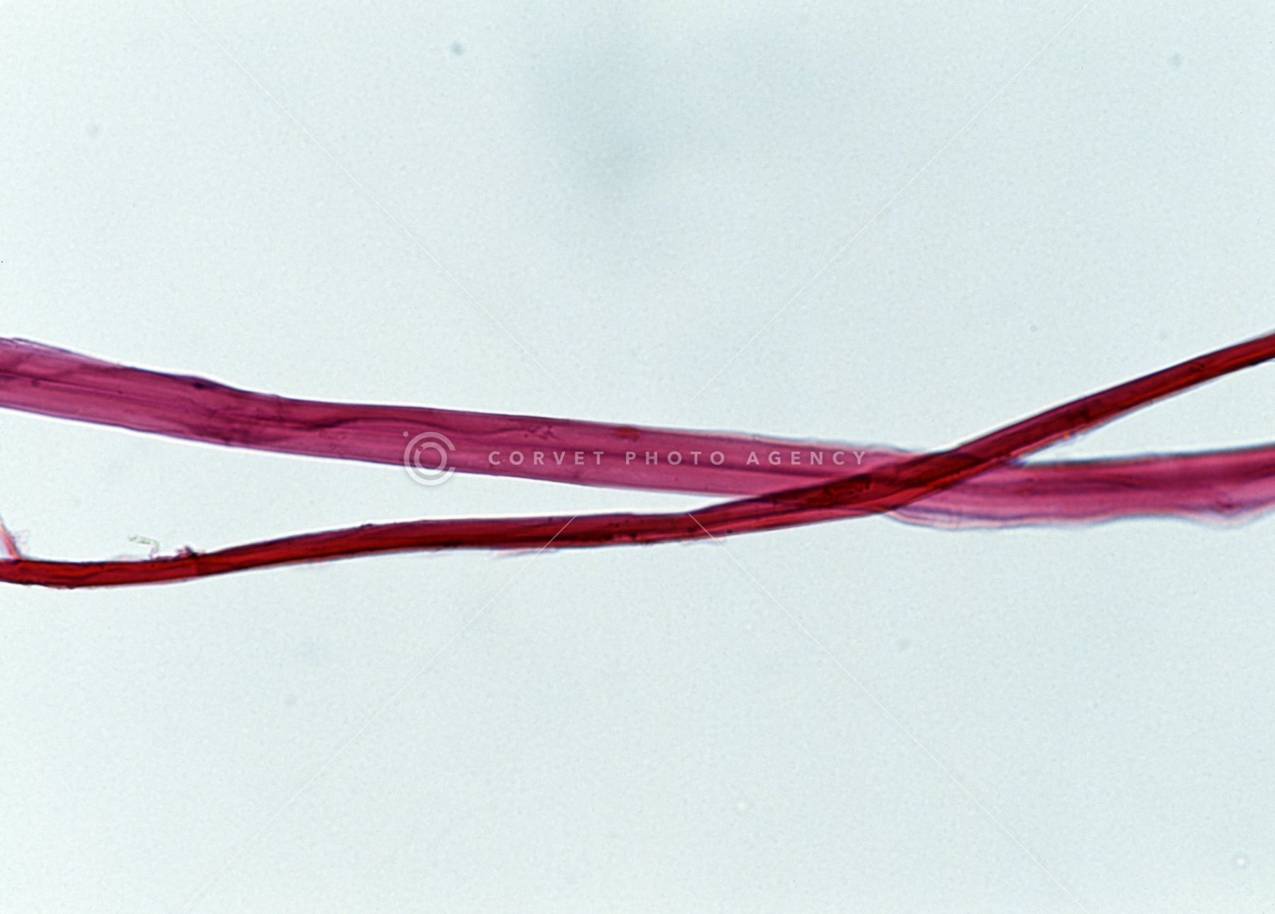 絹 繊維の形 側面 染色 顕微鏡倍率100