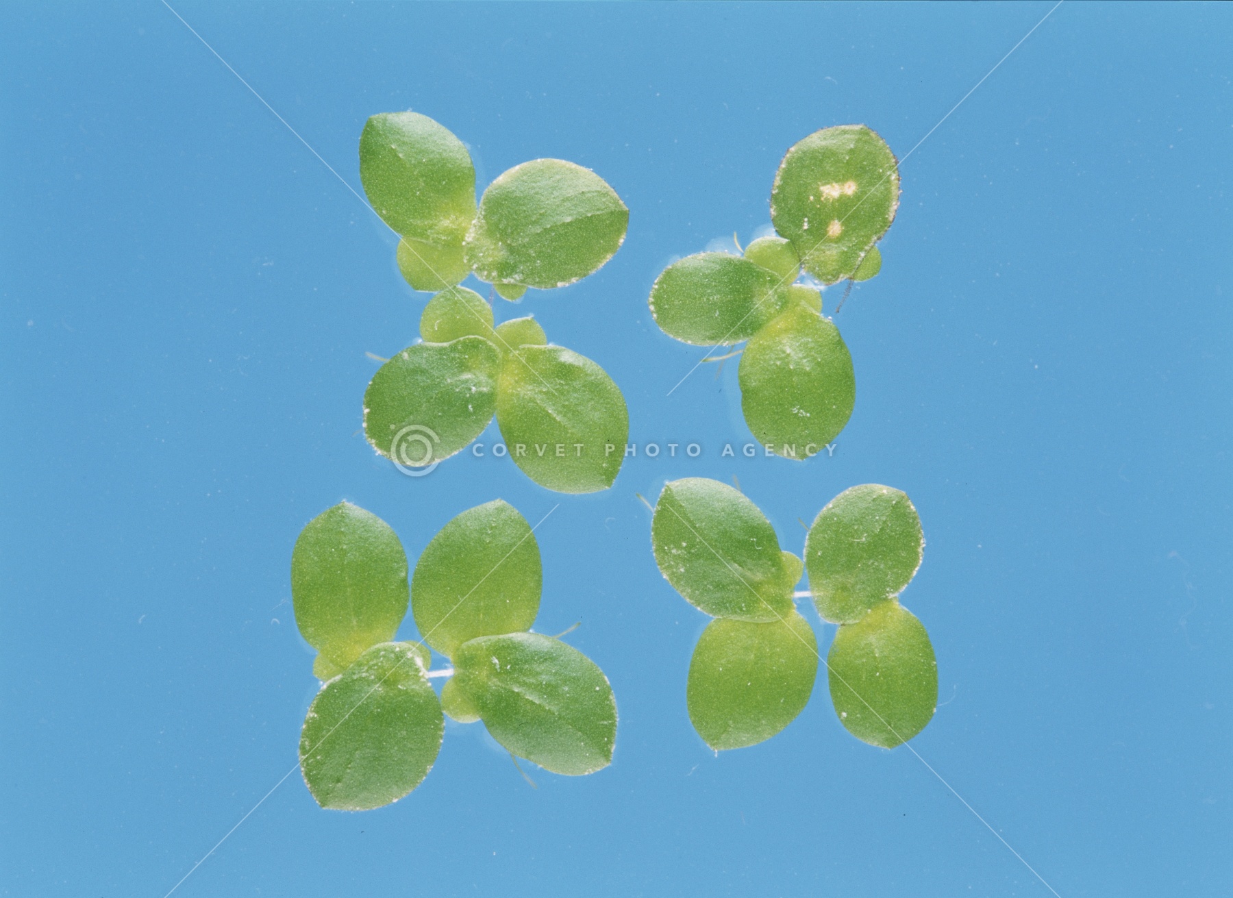 ウキクサ 育ち型 栄養生殖 15日後 A-16/16(空色バック) 倍率1.3 02.9 神奈川県茅ヶ崎市