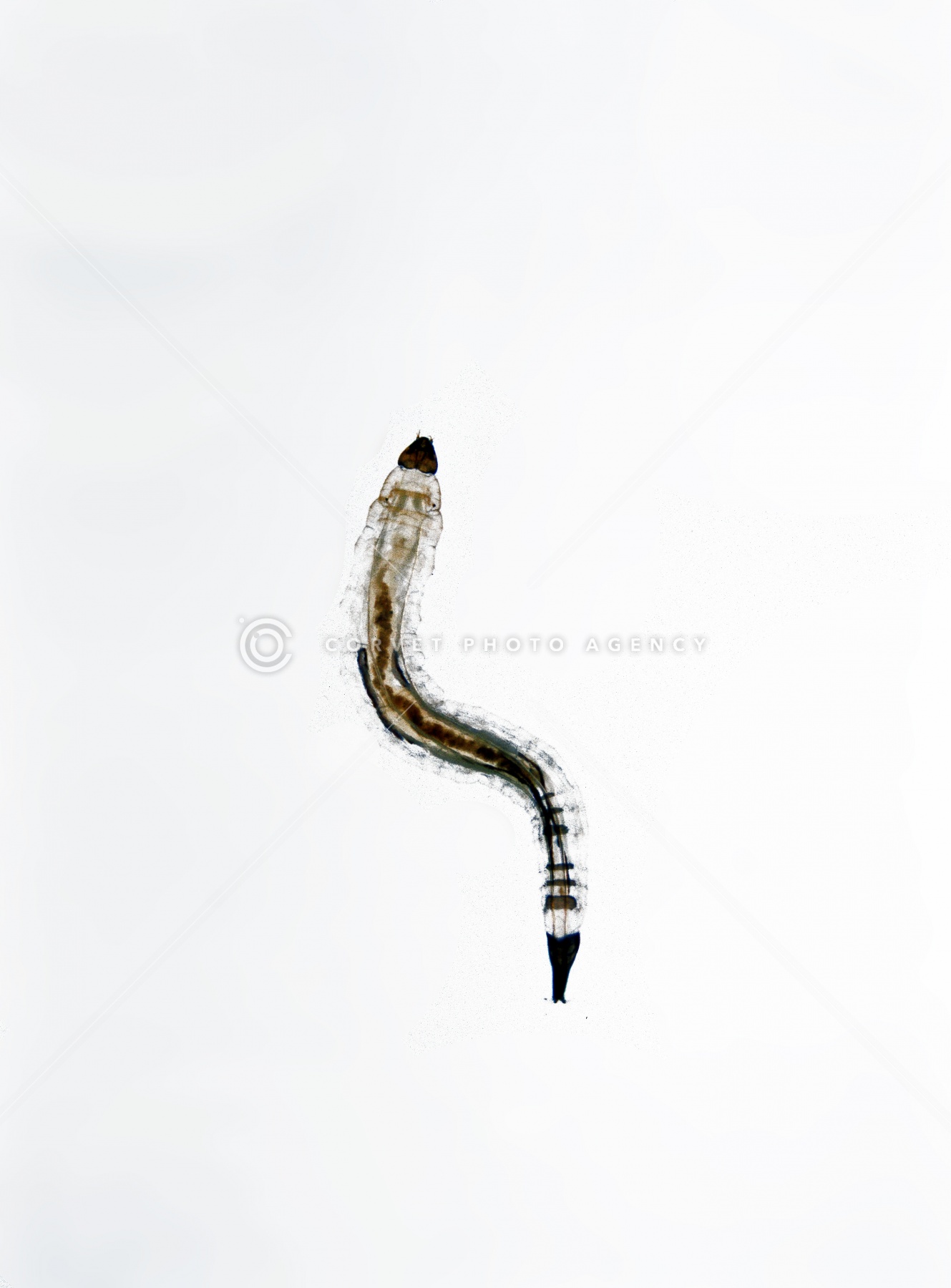 チョウバエ類(ホシチョウバエ)幼虫 昆虫類双翅目 川の水質の指標生物 たいへんきたない水の指標 倍率5 7月 神奈川県 茅ヶ崎市