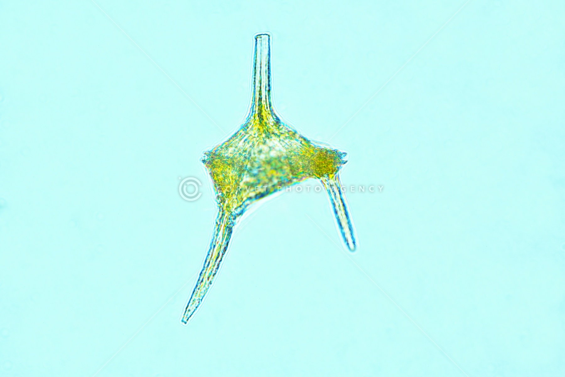 ツノモ (ツノオビムシ) Ceratium sp. 渦鞭毛藻類 海産 プランクトン ケラチウム科 神奈川県 茅ヶ崎市 9月 顕微鏡倍率40*1.25*PE2 画像の長辺0.35mm