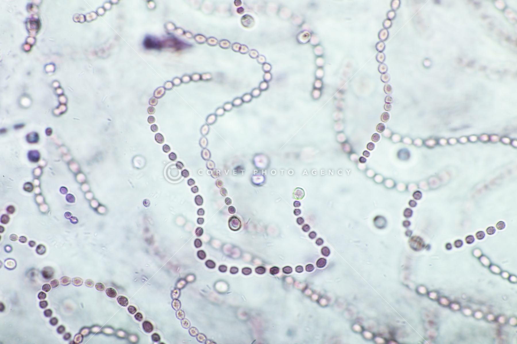 イシクラゲ 酢酸オルセイン染色 Nostoc commune ネンジュモ科 沖縄県 国頭村 3月 顕微鏡倍率60*1.25*PE2 画像の長辺0.23mm