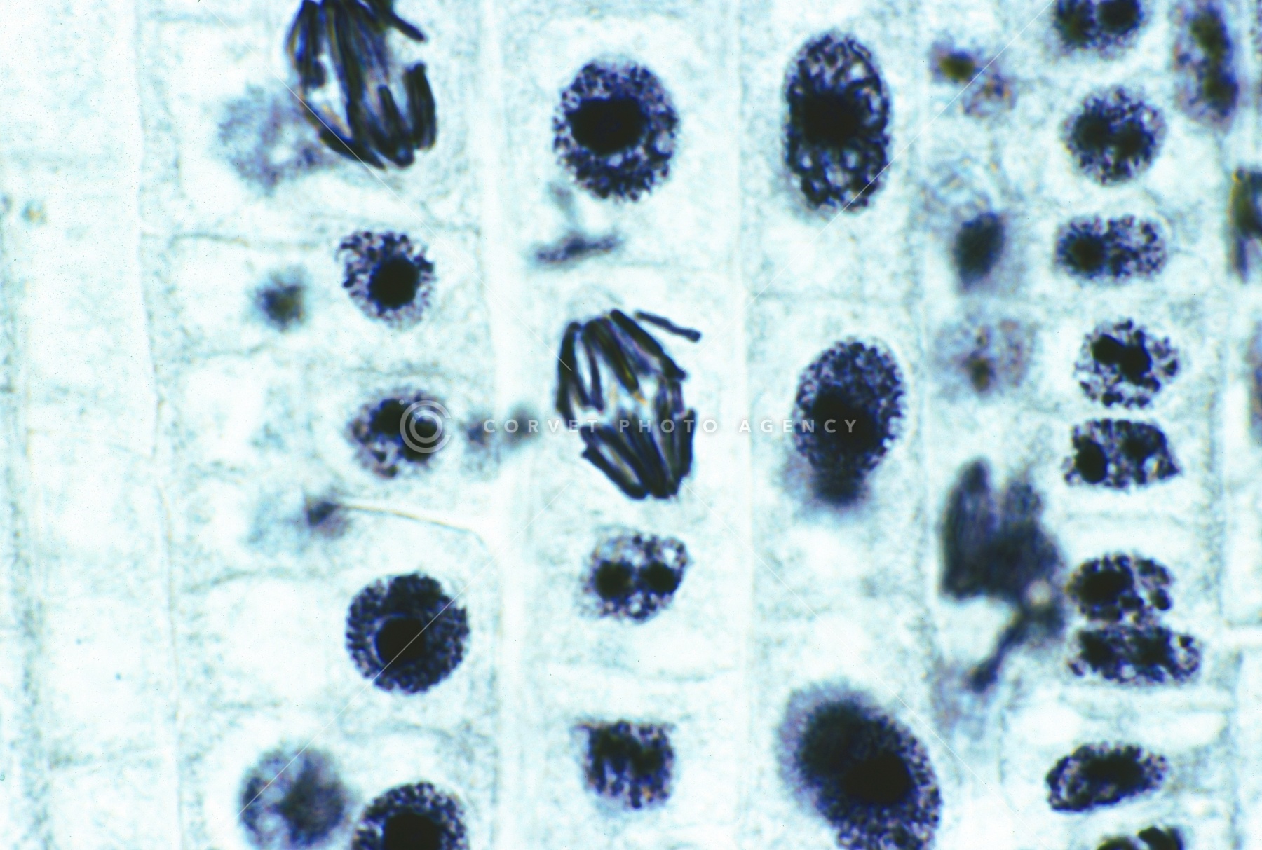 ソラマメ 根の先端 細胞分裂(体細胞分裂) 後期 ヘマトキシリン染色 顕微鏡倍率300