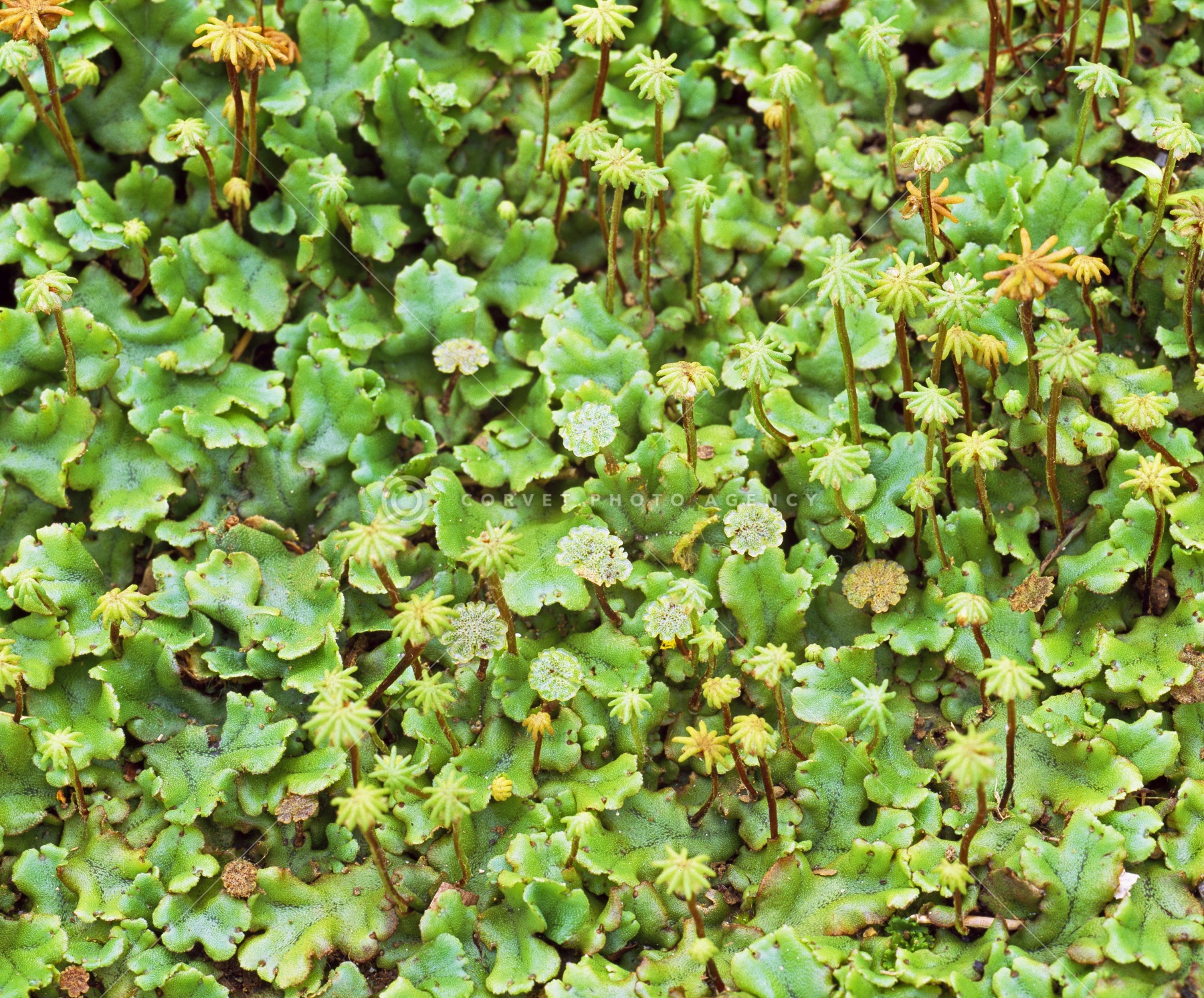 ゼニゴケ Marchantia tosana 生殖器床 雄株、雌株 ゼニゴケ科 千葉県 勝浦市 5月