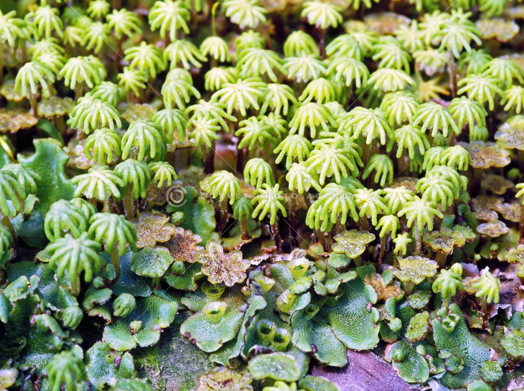 ゼニゴケ Marchantia polymorpha ゼニゴケ科 雄器床、雌器床、無性芽器 市原市 05.4.3