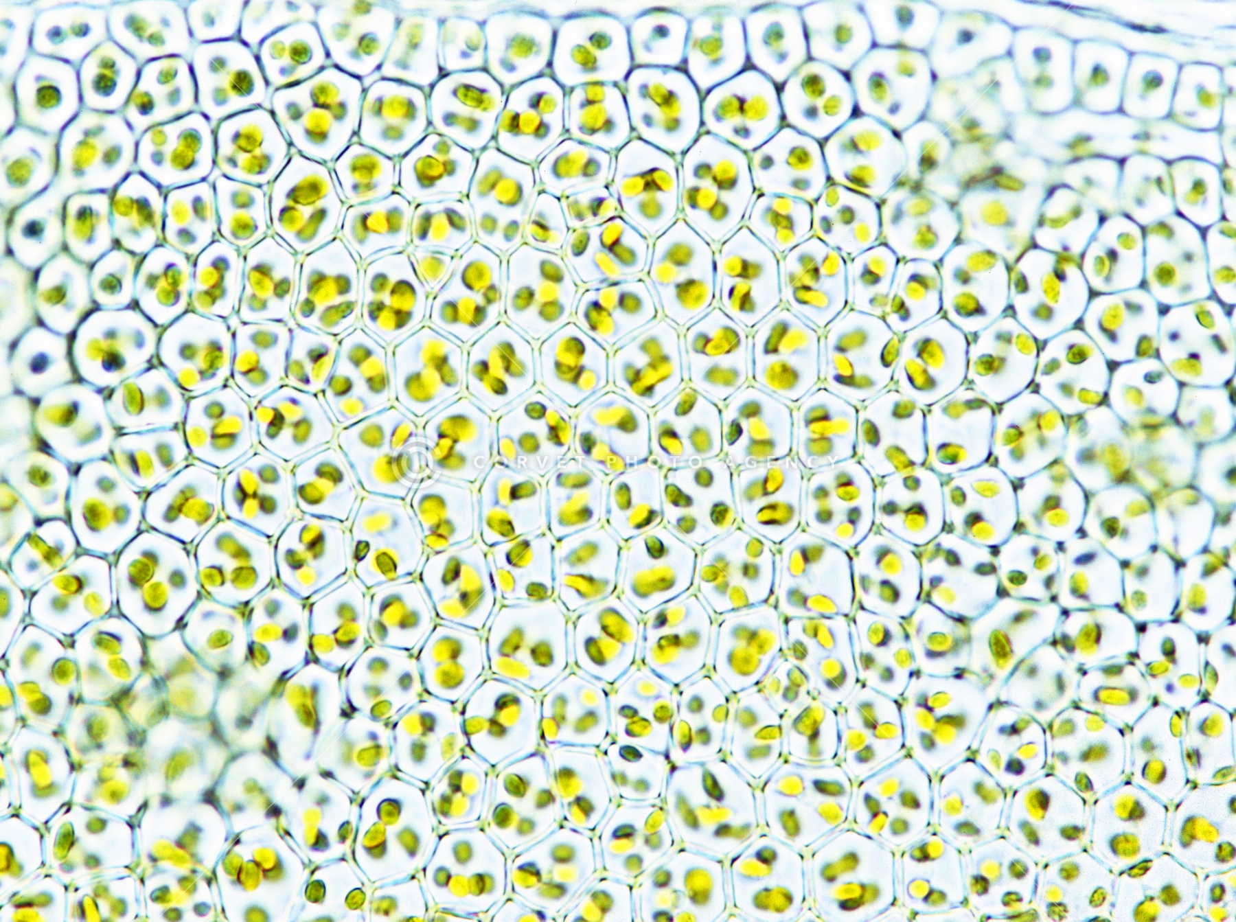 コスギゴケ 葉 葉緑体 顕微鏡倍率200